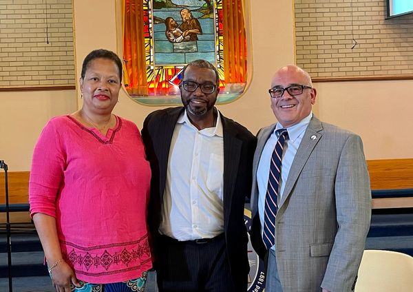 From left to right Cherie Garrette, Reverend Charles Boyer, and Mayor Reed Gusciora at the NAACP/Trenton Journal Mayoral Candidate Forum at Shiloh Baptist Church in September |