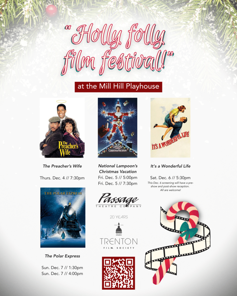 Passage Theatre Company and the Trenton Film Society are delighted to announce a brand-new Holly Folly Film Festival, a four-day celebration for adults and children running Thursday, December 4, through Sunday, December 7, at the historic Mill Hill Playhouse, located at 205 E. Front Street, Trenton, NJ.