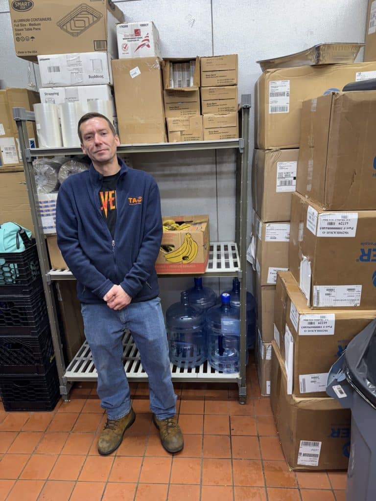 Schweder started as a part-time dishwasher for TASK while studying for his GED and now works in logistics, including shipping, receiving, and other organizational tasks.