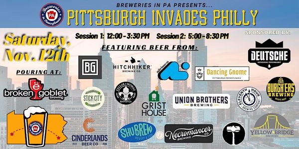 Breweries in PA introduces the 2022 Pittsburgh Invades Philly Beer Fest, held at Broken Goblet Brewing on Saturday, November 12th, from 12:00 PM- 8:30 PM. Each brewery will bring two beers for folks to enjoy during the event. There will be music, food trucks, raffles, and more. For tickets and more information, visit eventbrite.com.