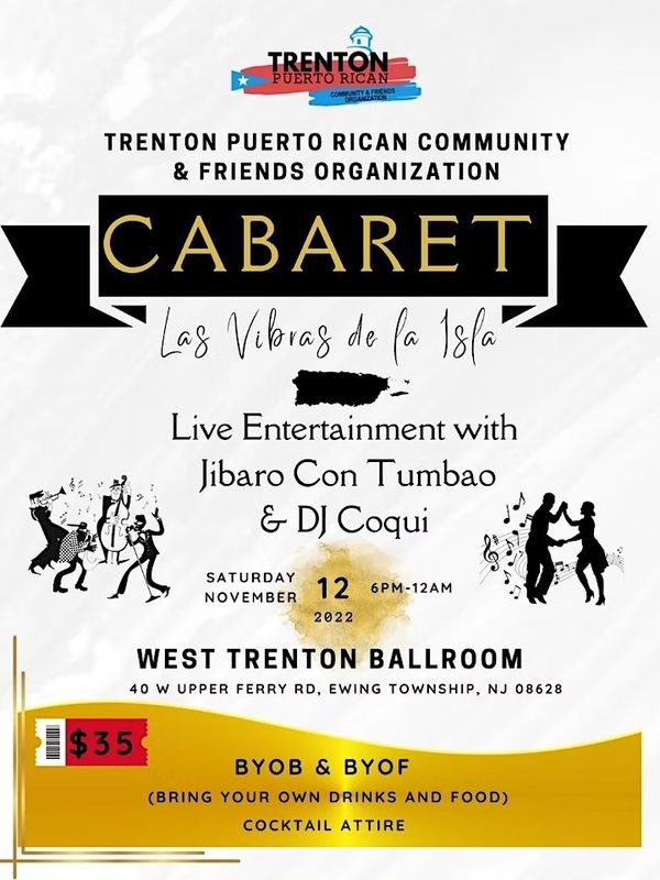The Trenton Puerto Rican Community Association will host a Cabaret this Saturday, November 12, from 6:00 PM to midnight. “El Desfile Puertorriqueño, aka Puerto Rican Parade of Trenton,” is organized by the Trenton Puerto Rican Community every year, along with other festivals and events in Trenton to educate and celebrate the legacy and root of Puerto Rican culture. Bring your own food and drinks and enjoy yourself with some dancing and music. For tickets and more information, visit eventbrite.com.