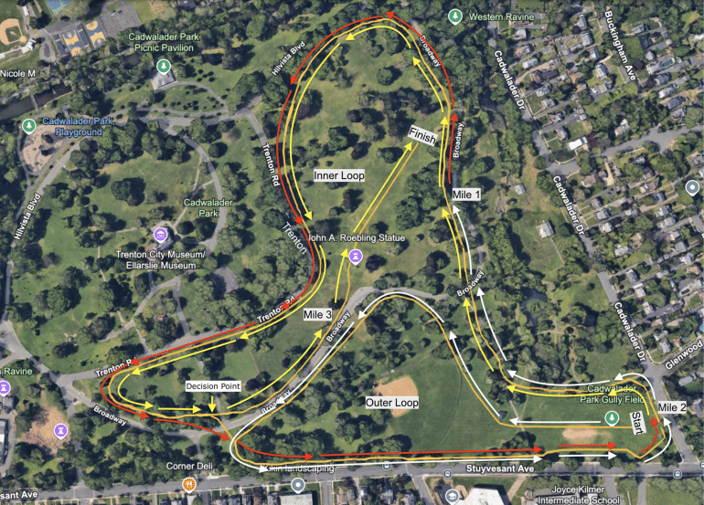 Both the Sept. 3rd and 9th races will start at Cadwalader Park’s Gully Field, near the corner of Cadwalader Drive and Stuyvesant Avenue, and finish behind the John A. Roebling statue, inside the park’s “Outer Loop.” The meets will last from 3 to 6 p.m., with the first race starting at 4 p.m. (girls first on Sept. 3rd, boys first on Sept. 9th). A makeup day is planned for Sept. 30th, in case of any rain dates or cancellations.