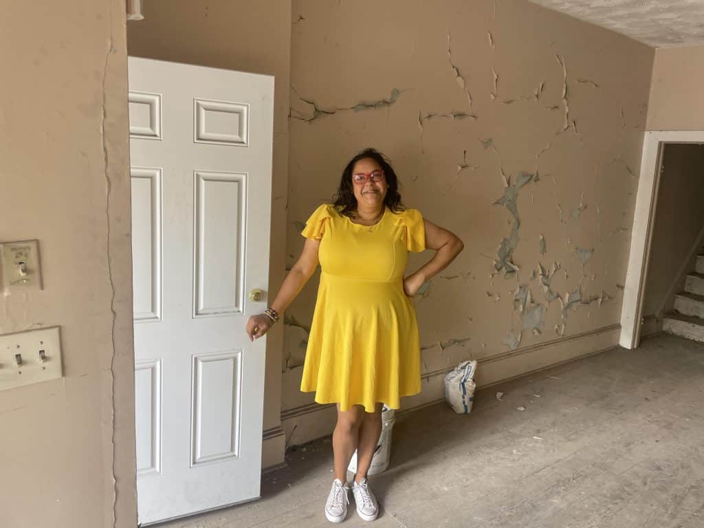 Vanessa Solivan standing in her home’s entryway is set to start renovation next week
